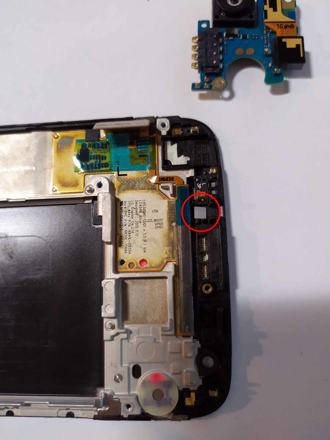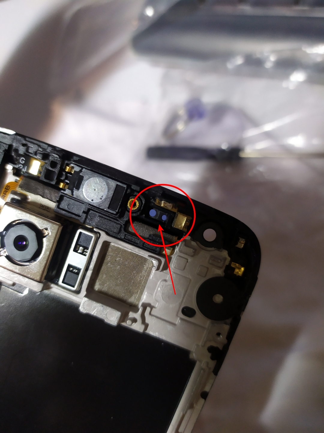 저 고무가 없으면 근접센서가 작동하지 않는다. 반드시 떼어서 이식해줘야 한다. 핀셋 같은걸로 잡아서 들면 쏙 빠진다.