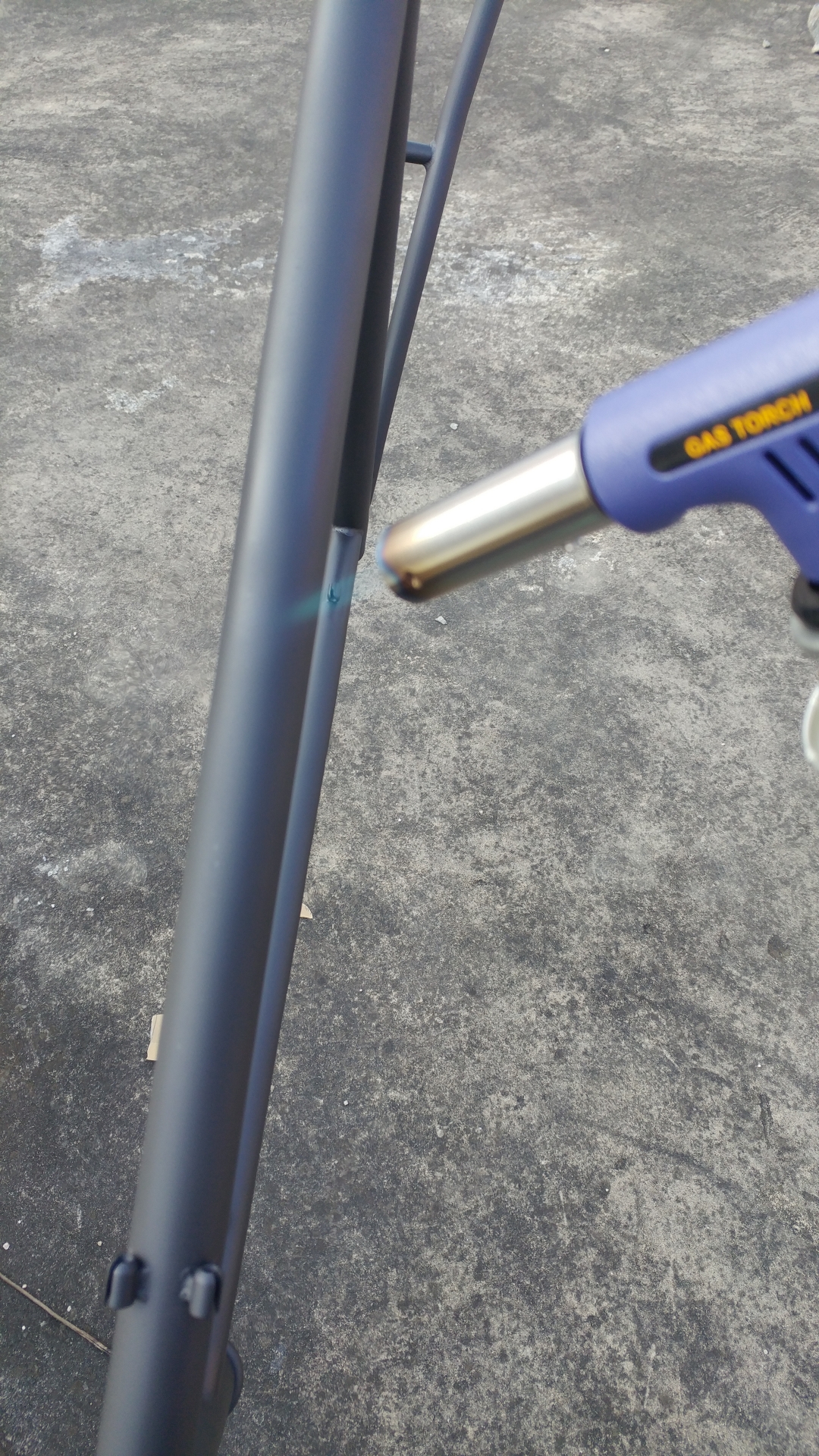 왔다갔다하면서 구워줘야 하는데 불꽃 면적이 좁아서 프레임 전체를 10~20분 구워주려면 꽤 오래해줘야 한다. 나는 어차피 내일 한번 더 도료를 입힐 예정이기 때문에 오늘은 적당히 해주었다.